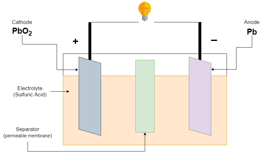 Firstly, the Lead-acid battery is invented in 1859 by French physicist Gaston Plante. it’s a negative electrode (anode) is made of spongy or porous lead. The Positive electrode (cathode) consists of lead oxide. Both anode and cathode electrodes are immersed in an electrolytic solution of sulfuric acid and water (dilute sulfuric acid).