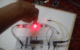 This is a 2 player game, based on 8051 microcontroller AT89S52. This game features two push buttons (one for each player) and an array of 8 LEDs for each. It demands high reflexes, as you have to push button as fast as you can. Each press would help the successive LED to glow until all the 8 LEDs are on. The competition is about how fast you can toggle (Press and then un-press) the buttons, greater your speed of pressing push button, greater will be your chance of winning. As soon as any of the two players reach the last LED, the push button of another player will get deactivated, which means it will not respond to the push. Also the LEDs of the winner will start toggling. This will ensure the accurate after results. To restart the game, press the reset button (button connected to pin 9 on microcontroller).