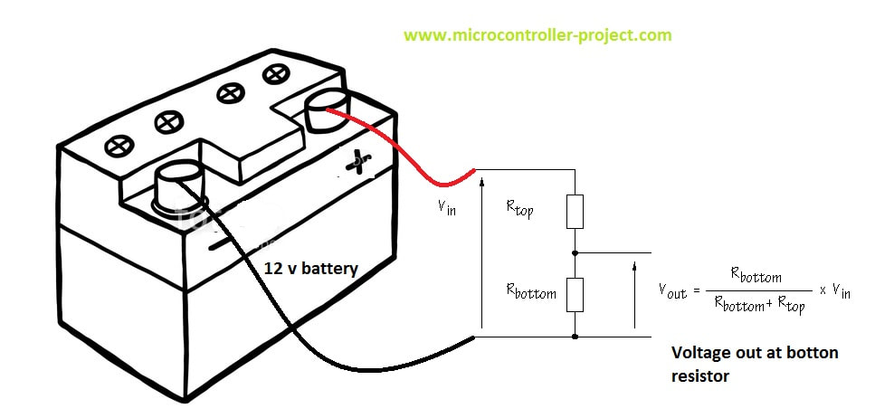 Basic and popular battery monitoring technique – Voltage Divider CircuitBasic and the most popular individual battery monitoring technique using microcontrollers in practice is voltage divider circuit. In voltage divider circuit two resistors are connected in series and source (battery) voltage is applied across its ends. Voltage is divided against the two resistors according to the resistor ohmic values.