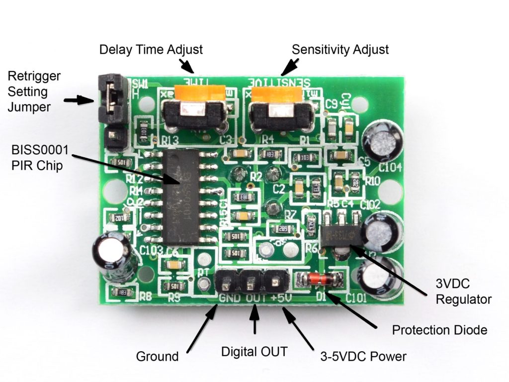It should be noted that the sensitivity of the PIR sensor needs to be adjusted to get the proper digital input. The PIR sensor is calibrated to provide defined output during program testing.