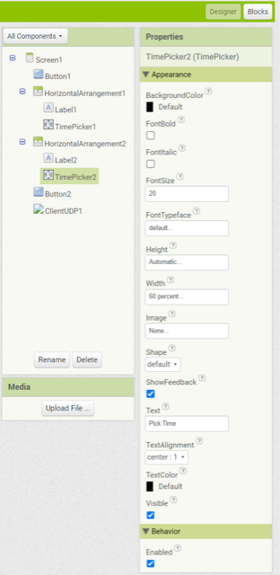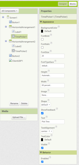 The ‘TimePicker1’ sets the start time of the motor/valve. It has the following properties.