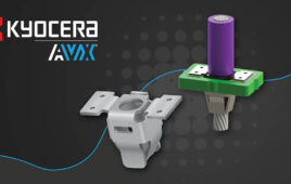 KYOCERA AVX, a global manufacturer of advanced electronic components, released the new SCM Series double-layer, series-connected electrochemical supercapacitor modules. The new SCM Series series-connected supercapacitor modules can be used by themselves or in conjunction with primary or secondary batteries to extend battery life and backup time or provide instantaneous power pulses in hold-up, energy harvesting,…