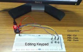In Atmega 32u4 based Generic USB Keyboard project is already learnt that How a generic USB Keyboard is made. Building upon the same project, this project is about building a special keypad to interact with the windows operating system. The keypad will be called Edit keypad and will have three buttons to do cut copy and paste functions. On a typical generic keyboard, for doing cut copy and paste, combination of keys is required to press together. The edit keypad will do the stated operations just by pressing individual keys of the keypad. The project utilizes 8-bit USB AVR – Atmega 32u4 as the USB controller chip and uses AVR based Lightweight USB Framework (LUFA) as the firmware which is modified to work for the edit keypad.