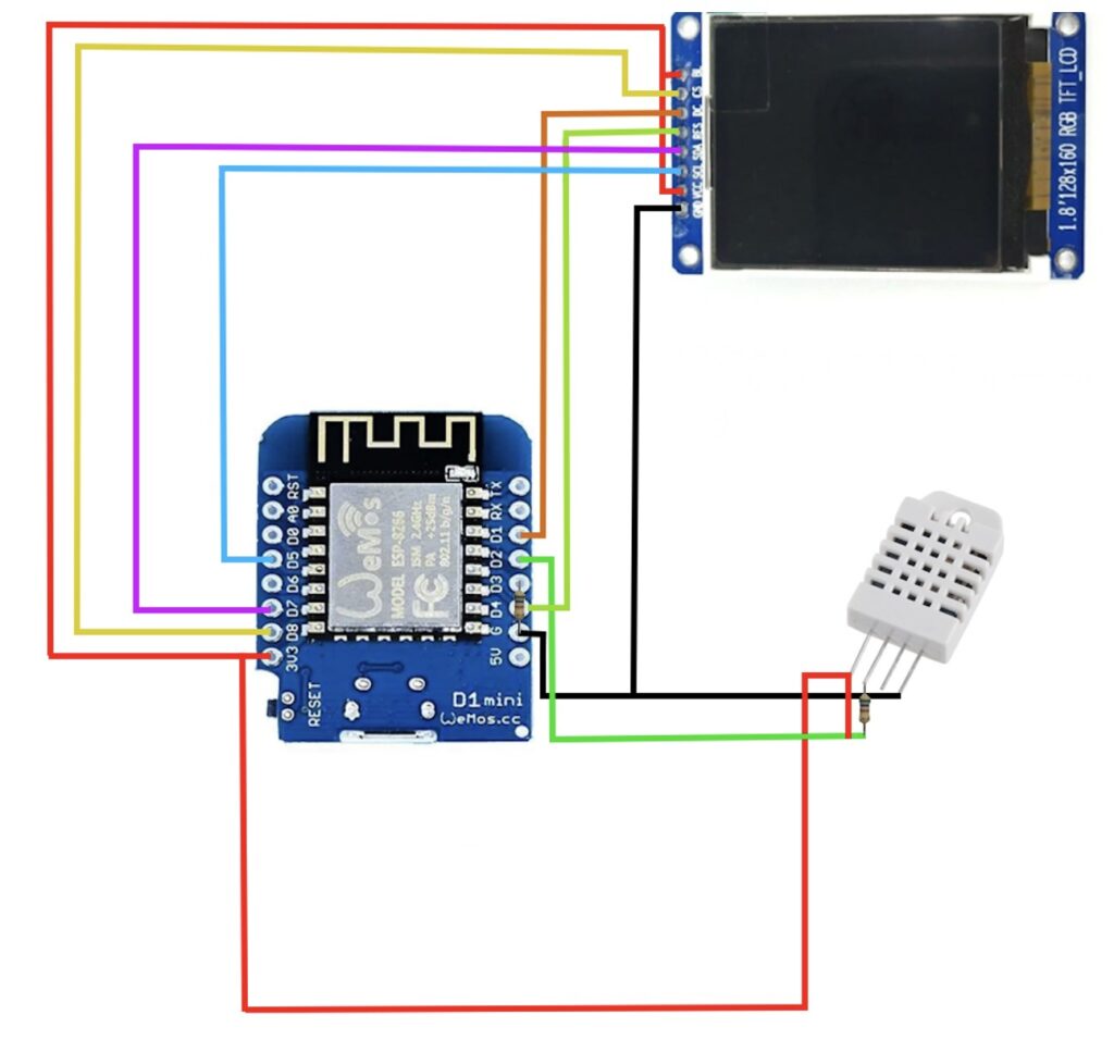 Equipped with a DHT22 sensor, these clocks provide accurate air temperature and humidity readings, displayed alongside the time on a 1.8-inch TFT LCD screen. Below we’ll cover how to design your own smart clock!