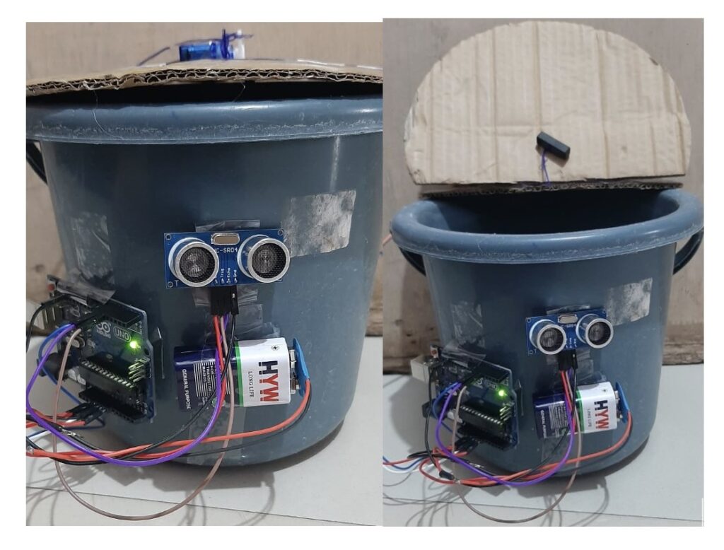 Upload the code to Arduino and power it up. Ensure the ultrasonic sensor is properly positioned inside the dustbin and facing outwards. Throw an object (trash) within the detection range of the dustbin’s sensor. The dustbin’s lid should open automatically for trash disposal.