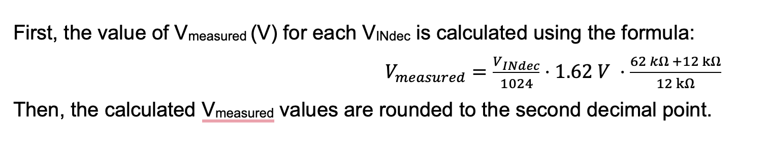 The ADC converts this voltage to a 10-bit code using the formula below.
