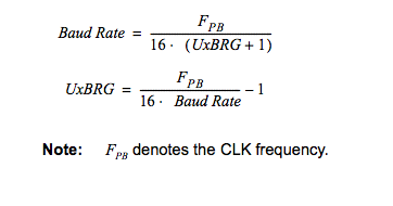 Most important register in initializing Uart is UBRR. Its a 16 bit register. Divided in to two 8- bit registers UBRRL and UBRRH. In order to set the desired baud rate. We have to calculate the value for this register. The formula for calculating the value is given on right side. “Baud Rate” is the desired baud rate that we need. Fpb is the clock/crystal frequency on which the microcontroller is working. UxBRG is UBRR 16-bit register. After calculating the value, upload the higher 8-bits in UBRRH and lower 8-bits in UBRRL.
