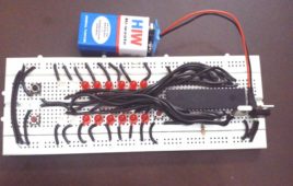 This is a 2 player game, based on 8051 microcontroller AT89S52. This game features two push buttons (one for each player) and an array of 8 LEDs for each. It demands high reflexes, as you have to push button as fast as you can. Each press would help the successive LED to glow until all the 8 LEDs are on. The competition is about how fast you can toggle (Press and then un-press) the buttons, greater your speed of pressing push button, greater will be your chance of winning. As soon as any of the two players reach the last LED, the push button of another player will get deactivated, which means it will not respond to the push. Also the LEDs of the winner will start toggling. This will ensure the accurate after results. To restart the game, press the reset button (button connected to pin 9 on microcontroller).