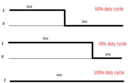 This project involves a combination of PWM (pulse width modulation) and ADC (Analog-Digital converter) to drive a DC motor at various speeds and in both clock and anti directions.PWM is a concept with which one can modify the pulse voltage varying it from 0% duty cycle to 100%.Duty cycle represents the time for which pulse is high when compared to the full pulse length.