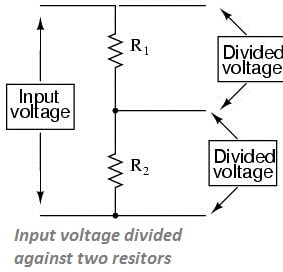 Basic and popular battery monitoring technique – Voltage Divider CircuitBasic and the most popular individual battery monitoring technique using microcontrollers in practice is voltage divider circuit. In voltage divider circuit two resistors are connected in series and source (battery) voltage is applied across its ends. Voltage is divided against the two resistors according to the resistor ohmic values.