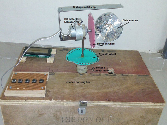 • After setting angles to rotate, the dish button is pressed. Both motors rotate one by one till the dish antenna angles match with set azimuth angle and elevation angle