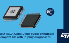 STMicroelectronics has revealed new class-D automotive audio amplifiers for smart-cockpit applications, engineered for tiny overall dimensions and with a digital input that simplifies circuit design. The new HFDA80D and HFDA90D extend ST’s family of high-frequency automotive amplifiers, complementing the HFA80A analog-input IC. All the devices operate at a switching frequency of 2MHz to save PCB…