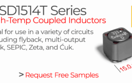 Coilcraft announced the MSD1514T Series of 1:1 high-temperature coupled power inductors designed for Flyback, SEPIC, Ćuk, Zeta, and related power conversion applications. The MSD_T family incorporates magnetic shielding technology to enable compact packaging while maintaining tight winding-to-winding coupling characteristics. The MSD1514T Series achieves a coupling coefficient of k ≥ 0.97, supporting implementation across multiple circuit…