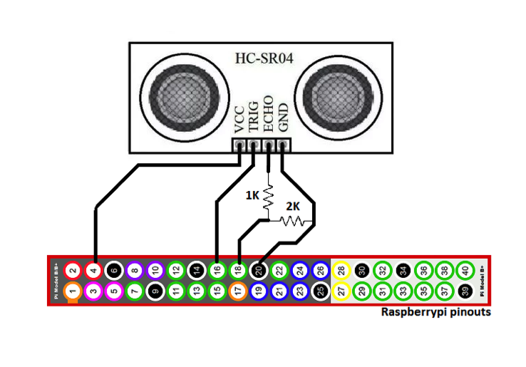- Connect VCC of HC-SR04 to 5V of Pi and GND to Ground