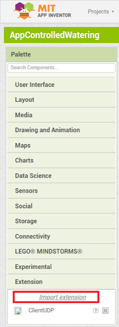 After downloading the extension file, import it into the MIT App Inventor by navigating to Extension-> Import extension.