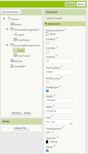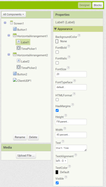 The ‘TimePicker1’ sets the start time of the motor/valve. It has the following properties.