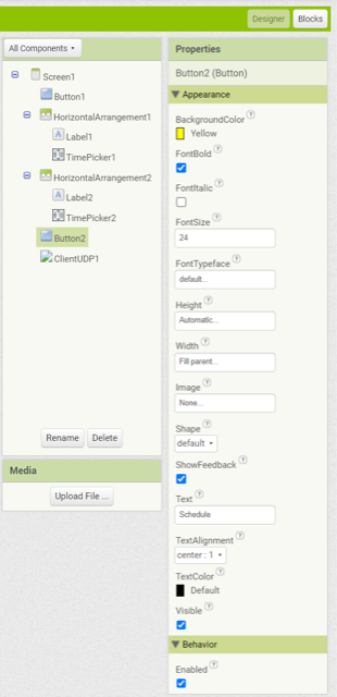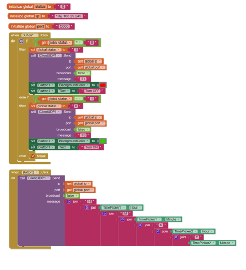 The mobile app is the heart of this project and is built in the MIT App Inventor. It lets users switch ON/OFF the motor/valve or schedule its operation.