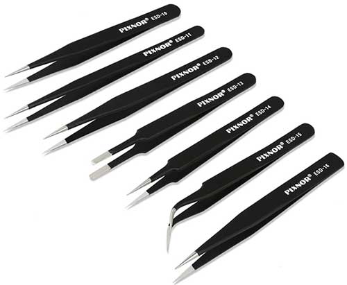 8. Tweezers: A simple but essential set of tools, these will definitely help you sort out a lot of complications. These come handy when you are working with small parts and need something to hold those minute things in place For electronics and electrical purposes, you can get an exclusive set of tweezers in a range of sizes and styles.