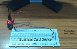 Business cards are commonly used to give away the business related information to the clients or customers. Business cards are just another means to promote the business and establish an identity or brand. The companies and firms usually issue business cards for all the officials holding important designations. A business card has the information like name of the card holder, designation of the card holder, name of the business organisation, address and contact details of the person or the business organisation. This project is a digital version of business card and allows to relay the business related information digitally on a computer screen or browser. The project is an USB Plug and Play device that prints the business card information on any text editor weather a desktop application or a textbox on browser on the press of a single button. The project has been built on Atmega 32u4 based Generic USB Keyboard project which was based on making a generic USB Keyboard.