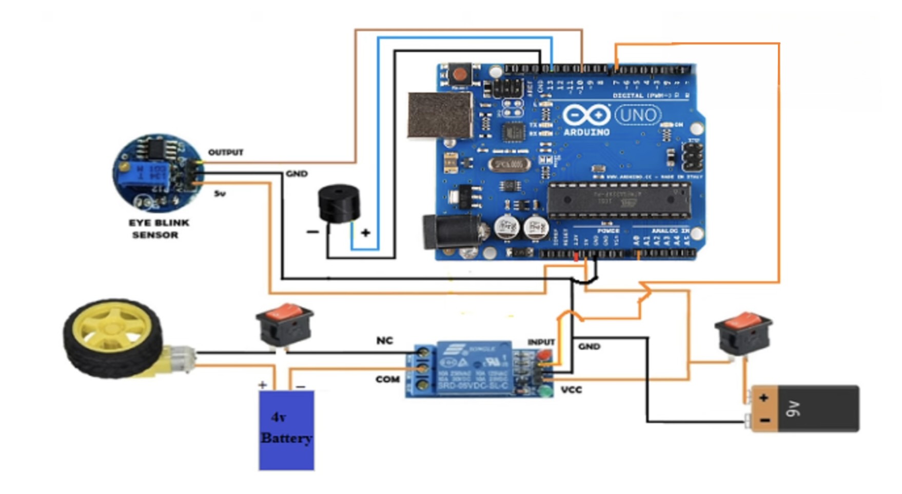 In this project, we’ll devise a smart system using Arduino UNO and a blink-eye sensor to monitor driver alertness. If the driver shows signs of drowsiness, the system takes proactive measures to prevent a potential accident. This includes alerting the driver and, if necessary, controlling the vehicle to ensure safety.