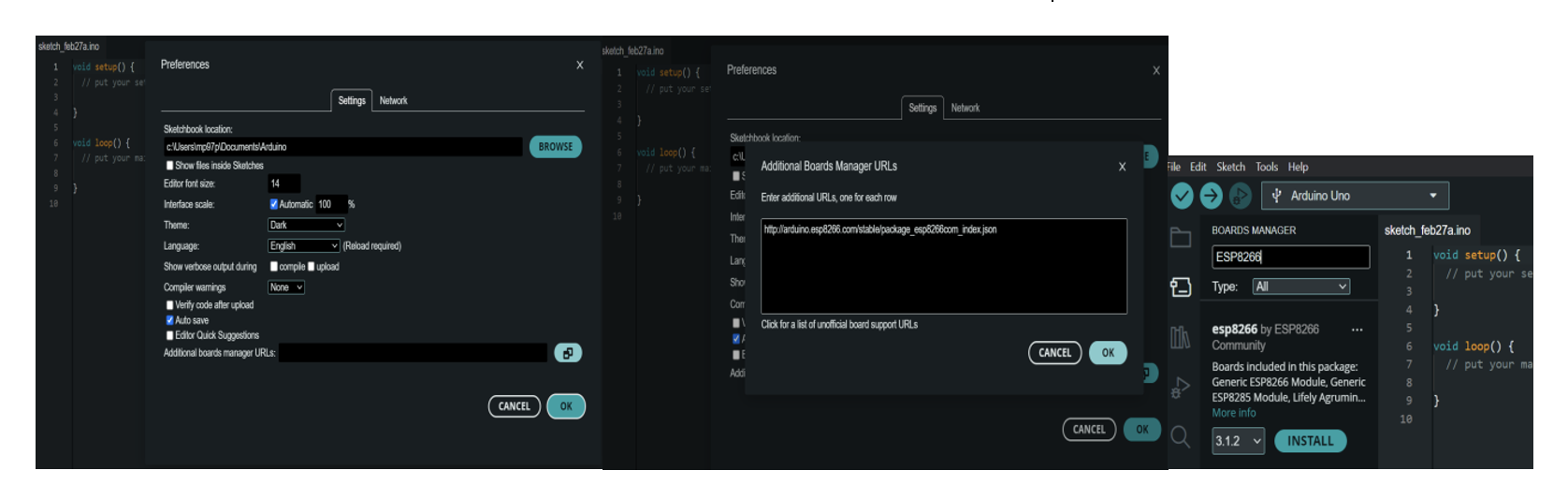 - In the “Preferences” window, find “Additional Boards Manager URLs” and paste this link: http://arduino.esp8266.com/stable/package_esp8266com_index.json