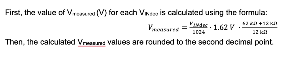 The ADC converts this voltage to a 10-bit code using the formula below.
