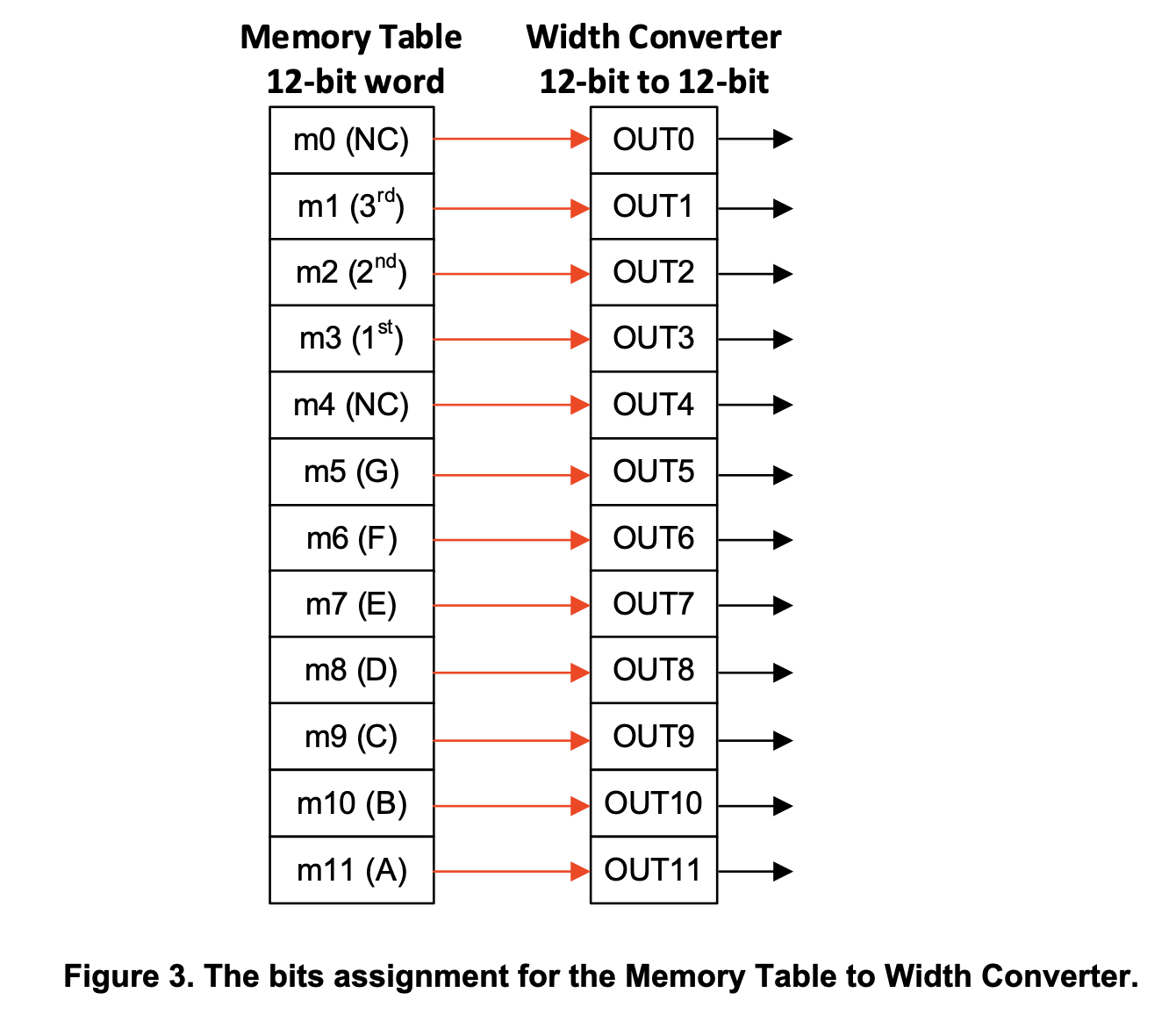 The required values for the Memory Table are already determined; now, they need to be sorted in ascending order of the Word index and inserted into the appropriate location in the software. For a better understanding of the connections between the Memory Table and the Width Converter, see Figure 3.